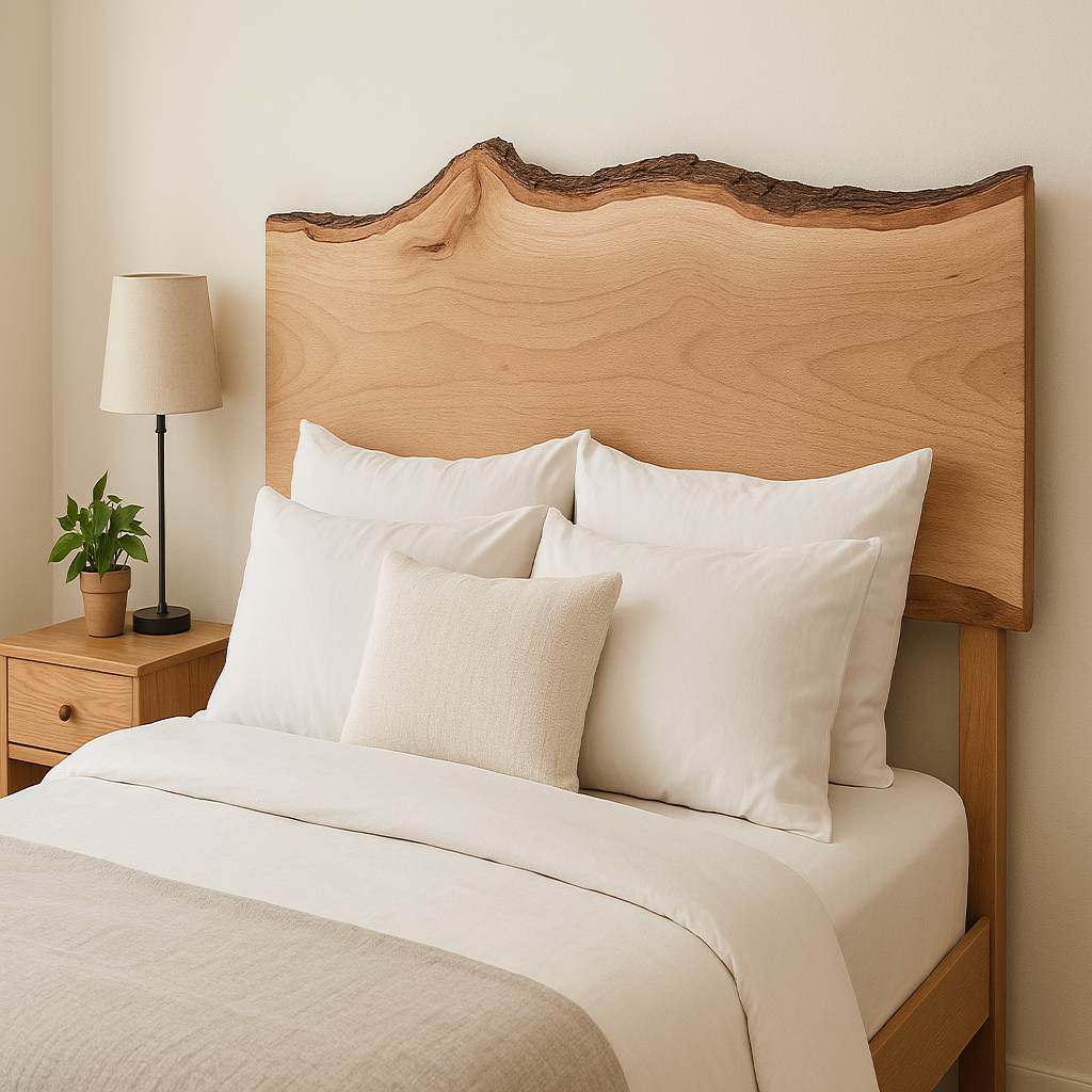 Enhance your bedroom with the distinctive charm of this Live Edge Beech Headboard, expertly crafted from premium beech wood. Its natural live edge showcases the wood’s organic curves and grain, bringing warmth and texture to your space. This headboard’s one-of-a-kind design ensures no two pieces are alike, making it a standout feature in any room. Perfect for adding a rustic yet elegant touch, it complements a wide range of decorating styles while creating a cozy, inviting atmosphere. Transform your bedroom into a serene retreat with this beautiful blend of craftsmanship and nature.