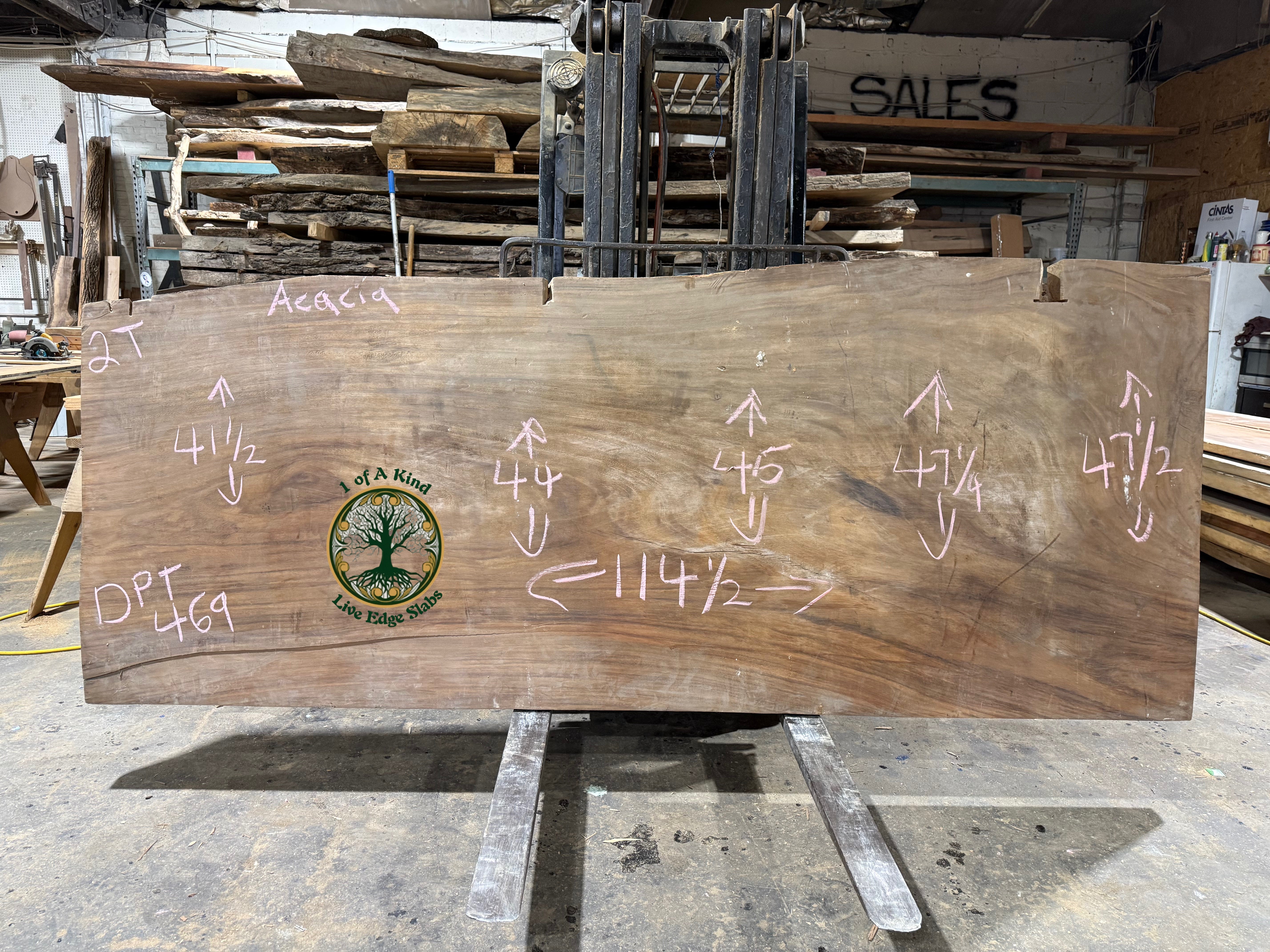 This exceptional Live Edge Acacia Slab measures 114" long by 45" wide by 2" thick, offering substantial dimensions for ambitious projects. Acacia wood delivers impressive strength and longevity, making it ideal for high-traffic surfaces that demand reliability. The natural live edges preserve the wood's organic character with distinctive, flowing contours that cannot be replicated. Each slab features unique grain patterns and warm honey tones, guaranteeing a truly singular piece for your space. Whether you're envisioning a statement dining table, kitchen island, or custom furniture, this hand-selected wood adapts seamlessly to both rustic and modern aesthetics. Transform raw natural beauty into a functional centerpiece that combines timeless appeal with enduring quality.
