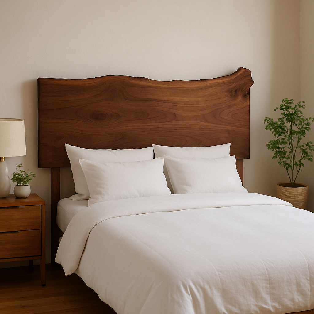 Crafted from genuine Black Walnut wood, this live edge headboard combines natural beauty with artisanal craftsmanship to transform your bedroom into a warm and inviting retreat. The rich tones and distinctive grain patterns of the wood enhance any decor while the hand-carved details add a unique character that sets your space apart. Its live edge design preserves the natural contours of the tree, delivering an authentic, rustic charm that elevates your sleeping area with timeless elegance. Choose this headboard to create a cozy, one-of-a-kind atmosphere that reflects both quality and style.