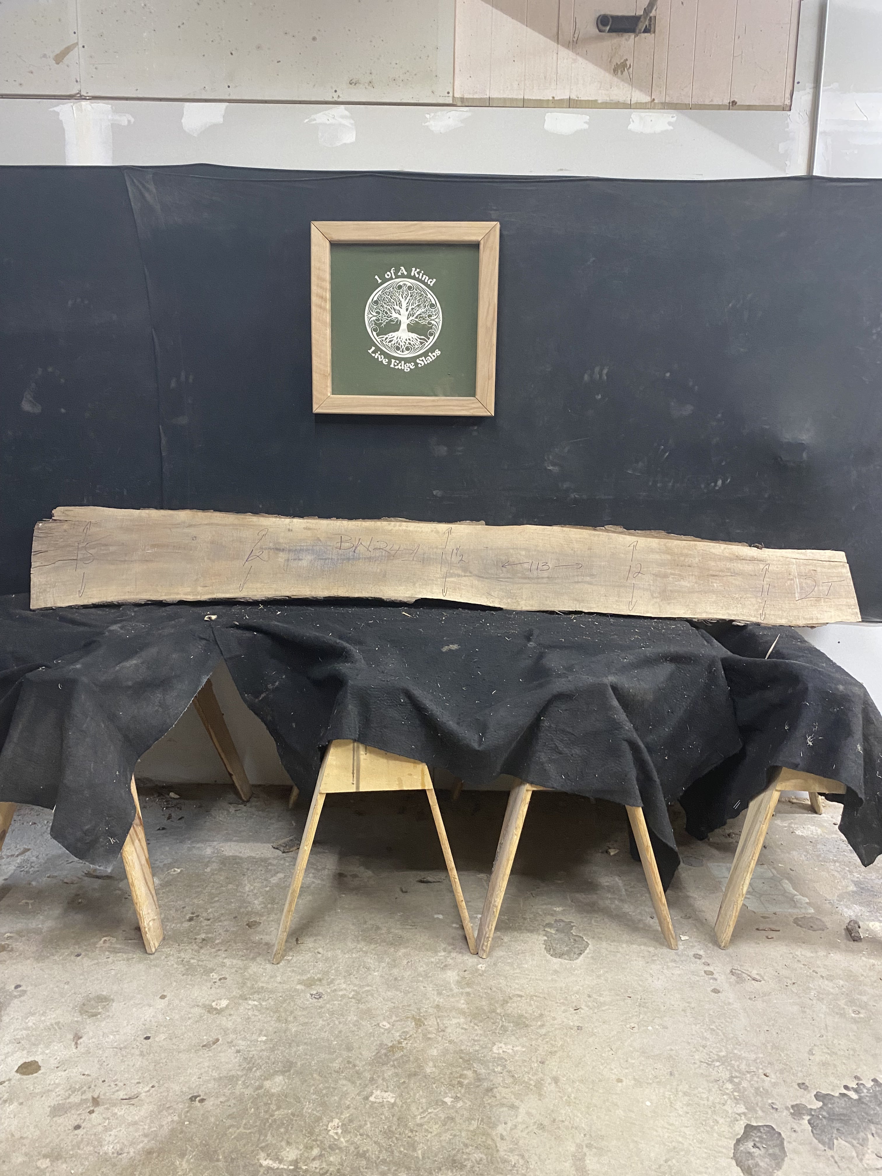 This beautiful Live Edge Black Walnut Slab is 113" long, with widths ranging from 11-15" and a thickness of 2". It's a stunning statement piece for any living space, giving your home an air of sophistication and natural beauty.