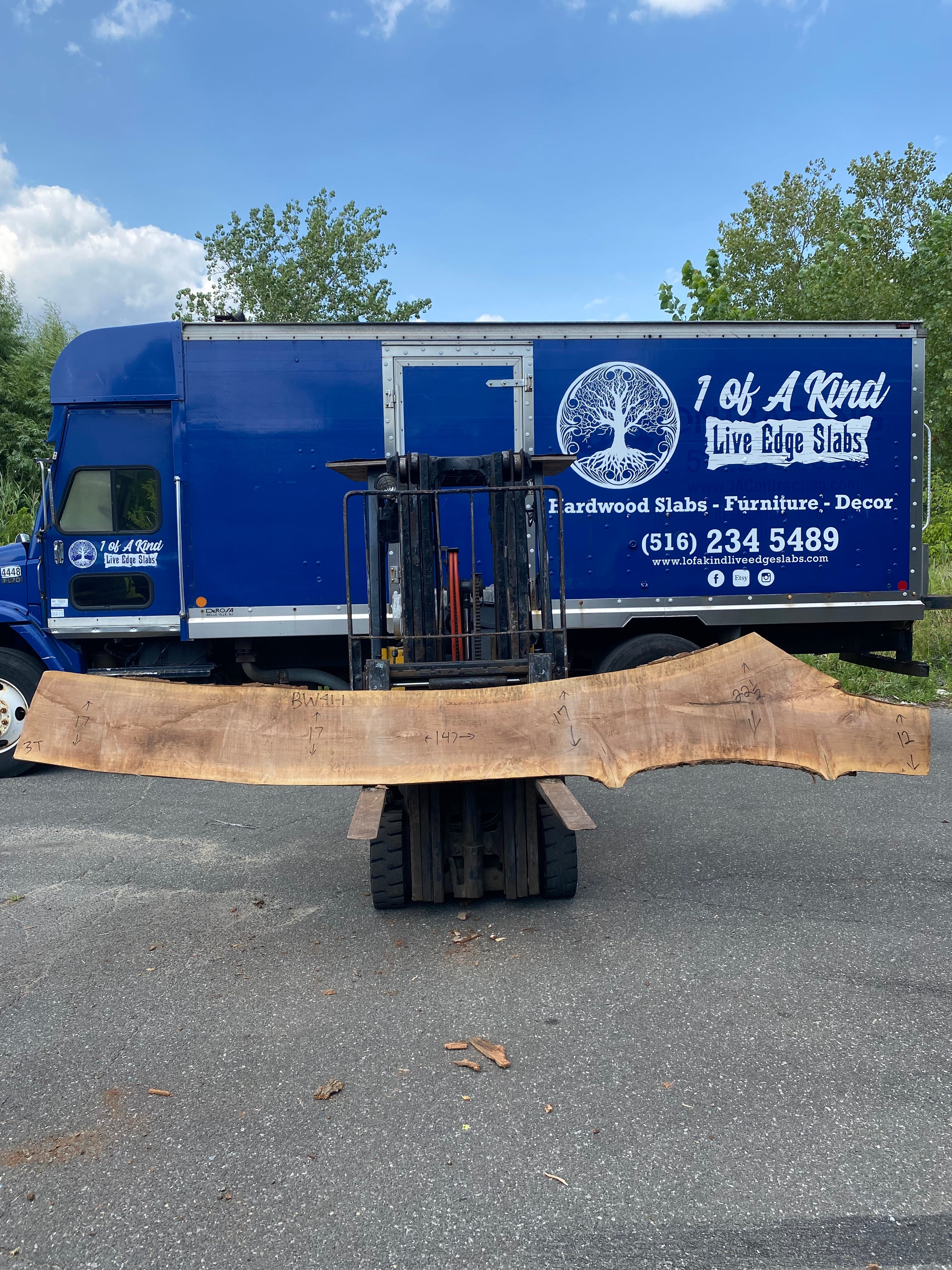 This stunning live edge black walnut slab measures 147"L x 17-22.5"W x 3"T, making it the perfect centerpiece for your next woodworking project. Its natural, undulating edges offer a unique and elegant touch. Let the natural beauty of this slab bring your vision to life.