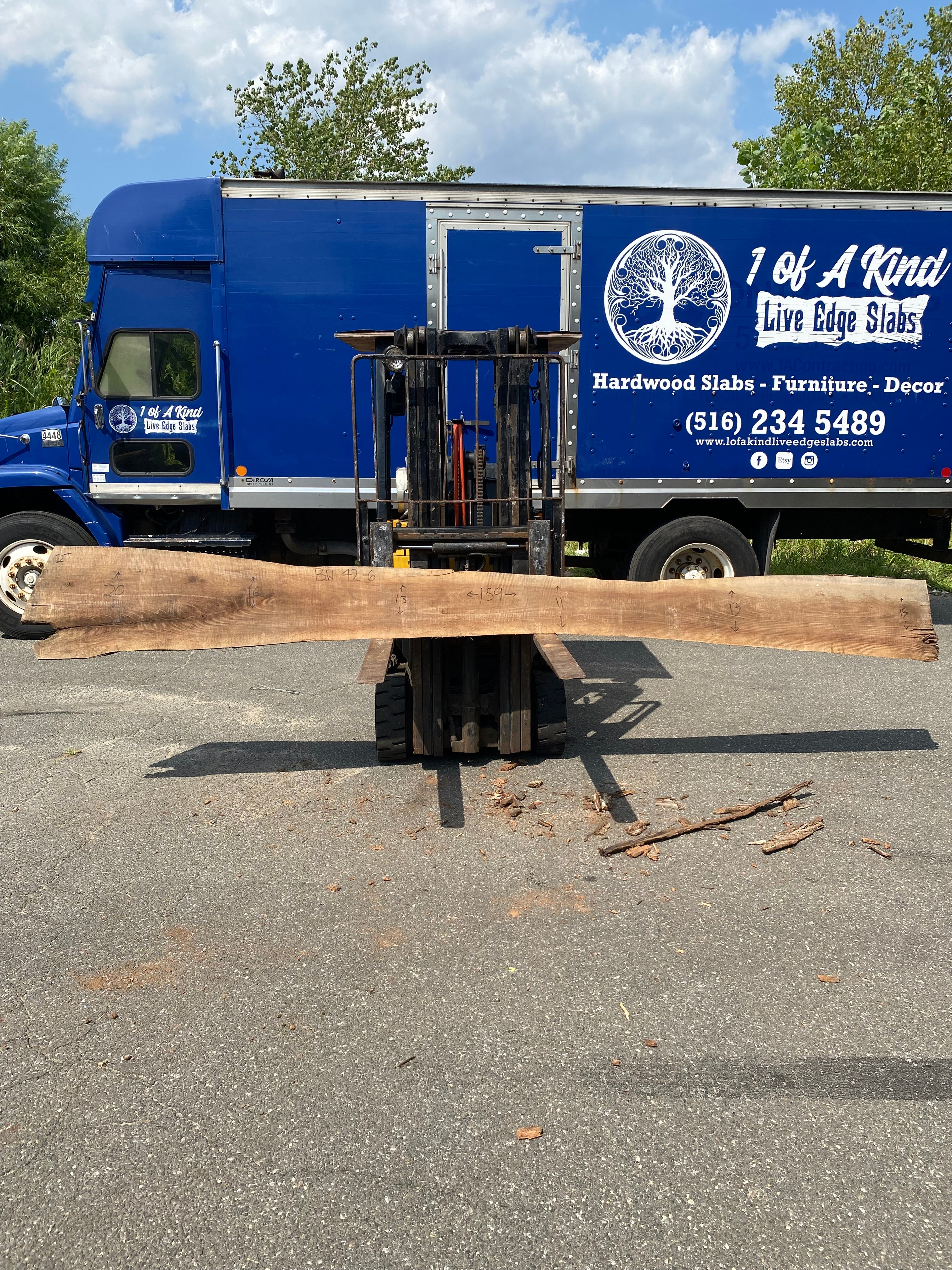 This stunning live edge black walnut slab measures 159"L x widths ranging from 11-20" x2"T, making it the perfect centerpiece for your next woodworking project. Its natural, undulating edges offer a unique and elegant touch. Let the natural beauty of this slab bring your vision to life.