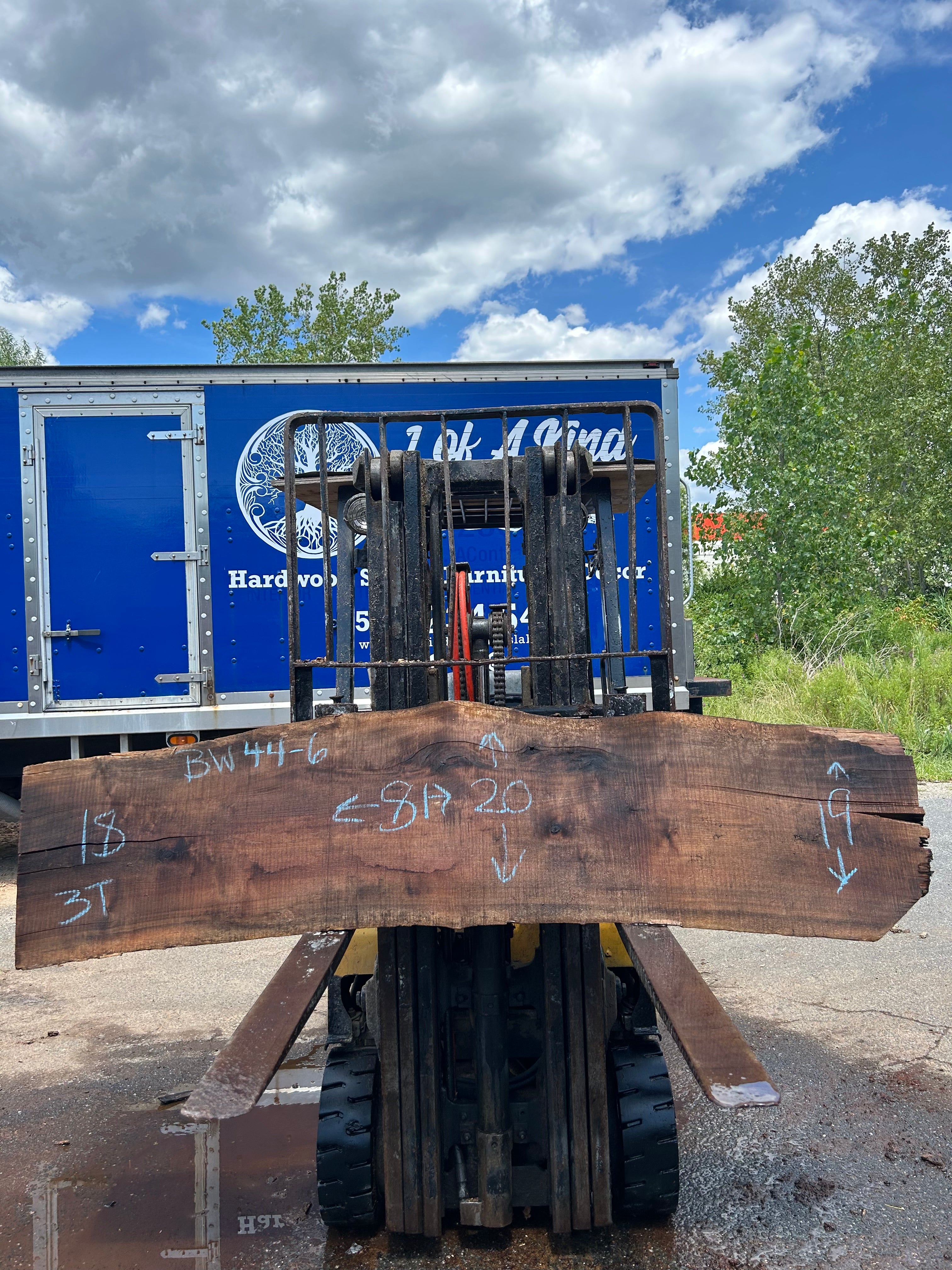 Discover the beauty of woodworking with this gorgeous live edge black walnut slab. Measuring 81"L x 18-20"W x 3"T, it's perfect for creating custom furniture or decor that will last for generations! Bring a warm, rustic feel into your home and let your creativity flow.