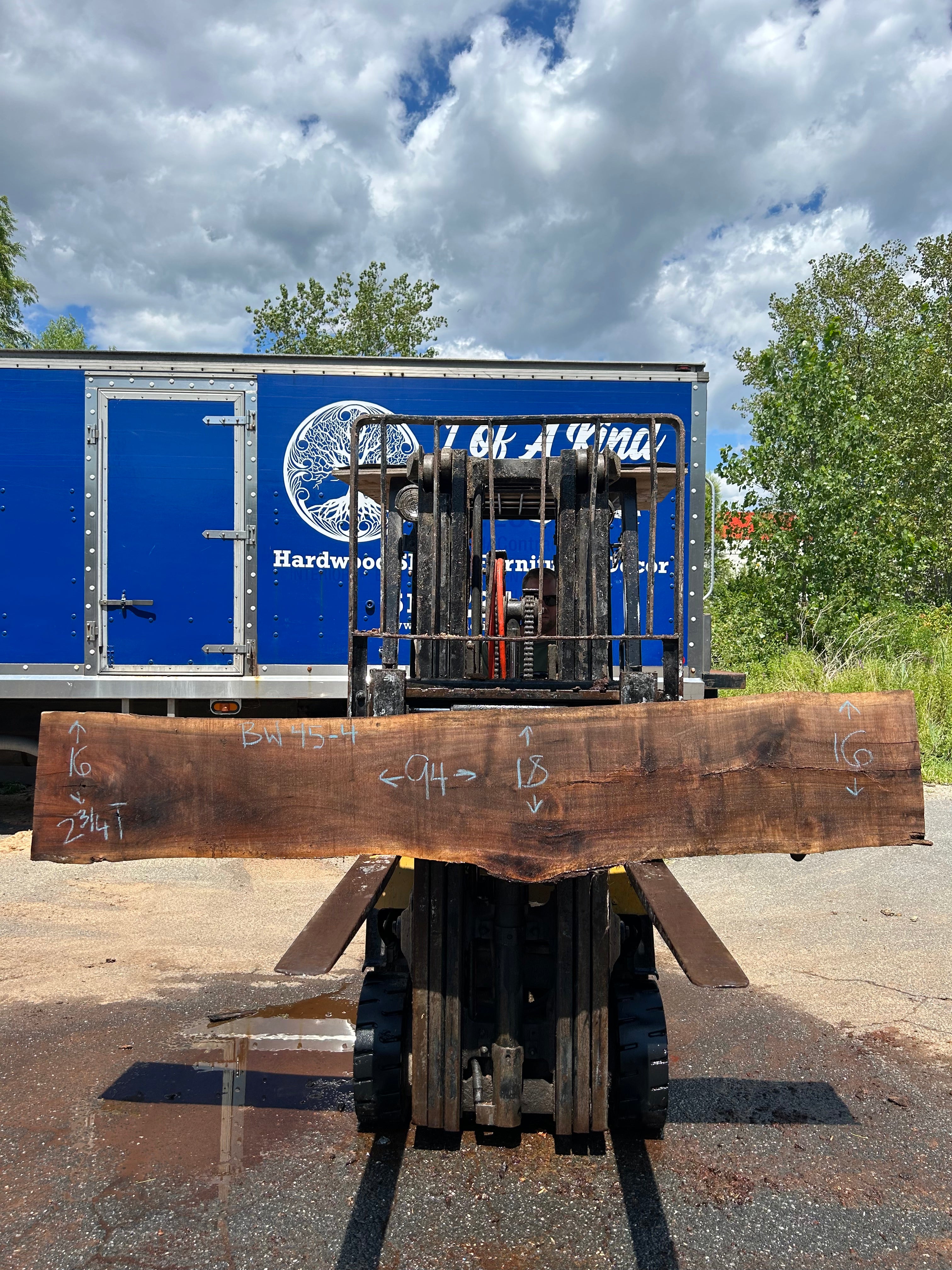Experience true craftsmanship with this one-of-a-kind Live Edge Black Walnut Slab! Stunning 94"L x 16-18"Wx2 3/4"T slab will add a unique character to any room. Make a statement that will last with this beautiful, natural wood.