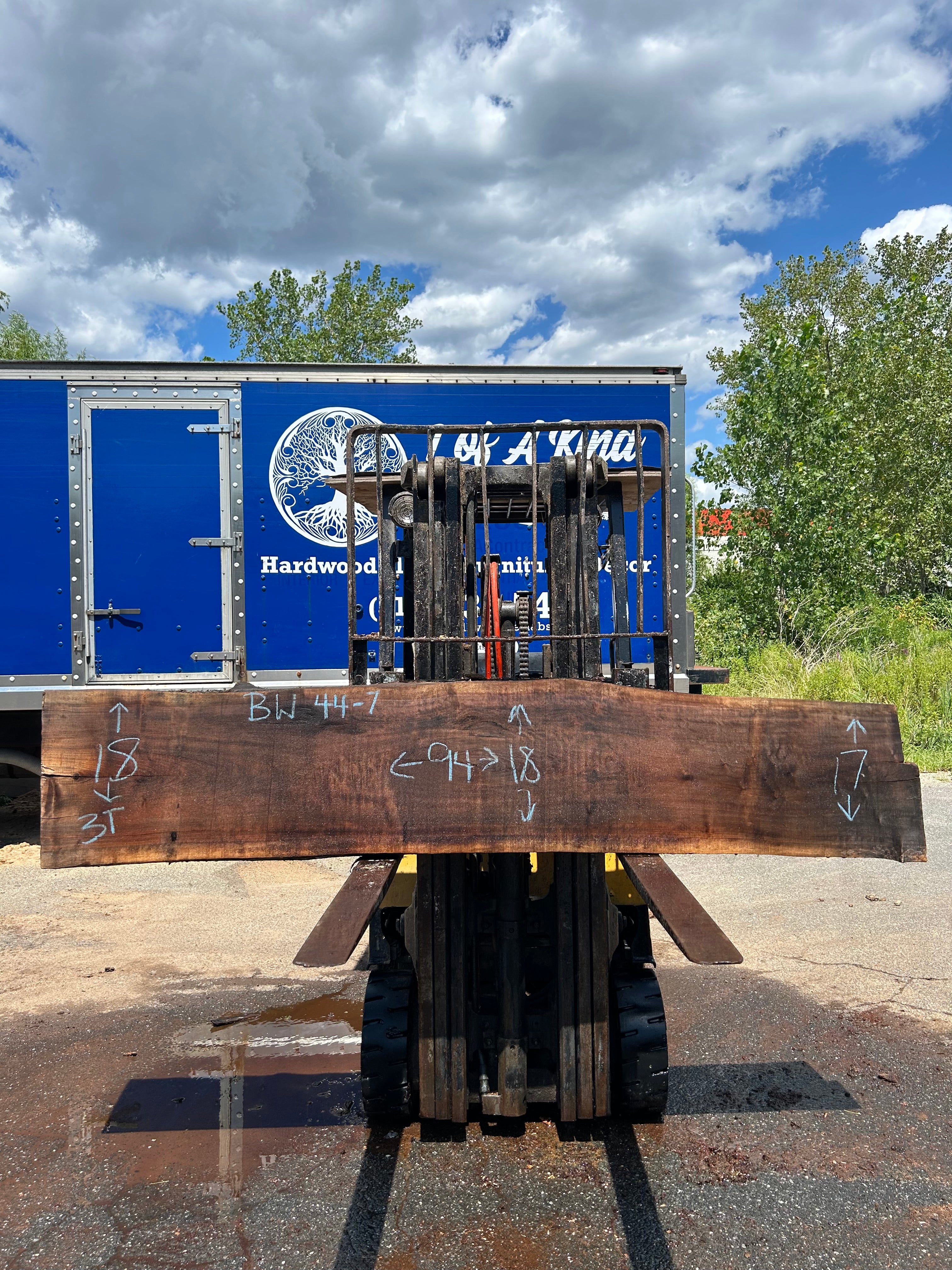 Discover the beauty of woodworking with this gorgeous live edge black walnut slab. Measuring 94"L x 17-18"W x 3"T, it's perfect for creating custom furniture or decor that will last for generations! Bring a warm, rustic feel into your home and let your creativity flow.