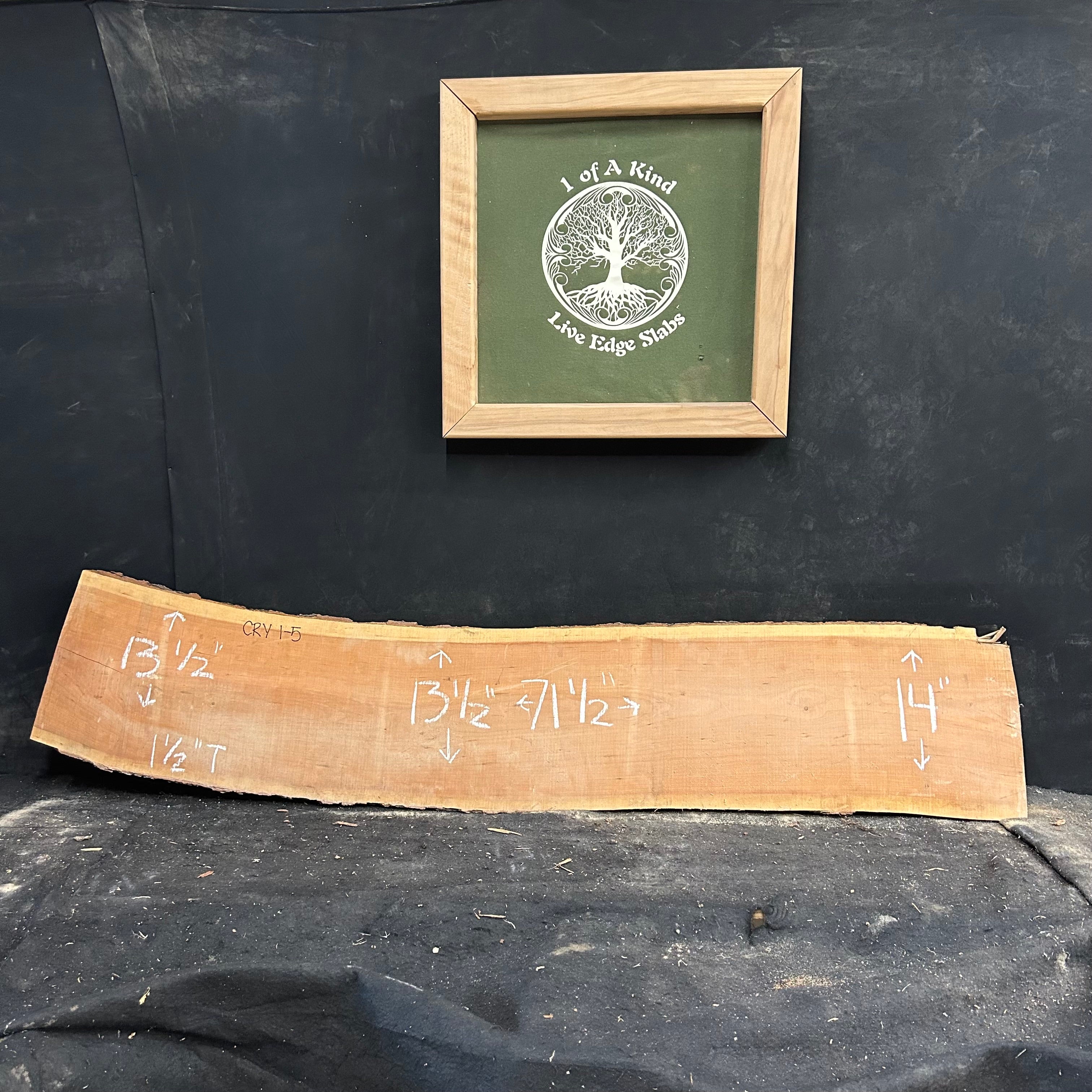 This cherry slab is a one-of-a-kind statement piece, with its live edge adding to the unique character and beauty of the wood. Measuring 71 1/2" in length, 13 1/2-14" in width, and 1 1/2" in thickness, it's perfect for creating stunning furniture and accents for your home.
