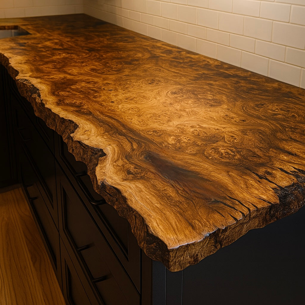 Discover the distinctive charm of the Live Edge Cottonwood Countertop. Crafted from durable cottonwood, this beautiful countertop adds natural character and warmth to any kitchen. Its unique live edge design highlights the wood’s texture and grain, creating an inviting and timeless centerpiece for your home. Enjoy lasting quality and style with this handcrafted wood countertop.