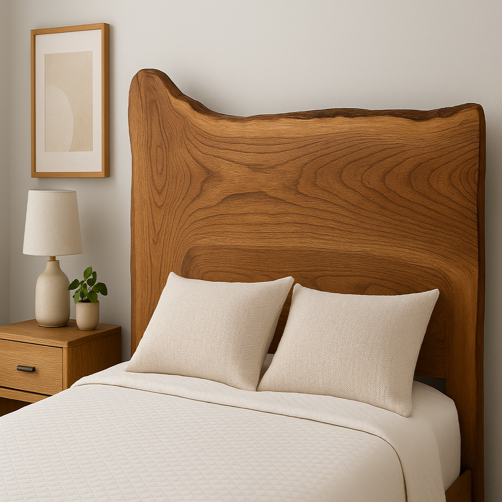 Elevate your bedroom’s ambiance with this Live Edge Elm Head Board crafted from genuine Elm wood. Its natural rustic charm and hand-carved details bring warmth and individuality to your space. Perfect for creating a cozy, inviting atmosphere, this headboard transforms your bed into a stunning centerpiece that reflects authentic craftsmanship and timeless beauty.