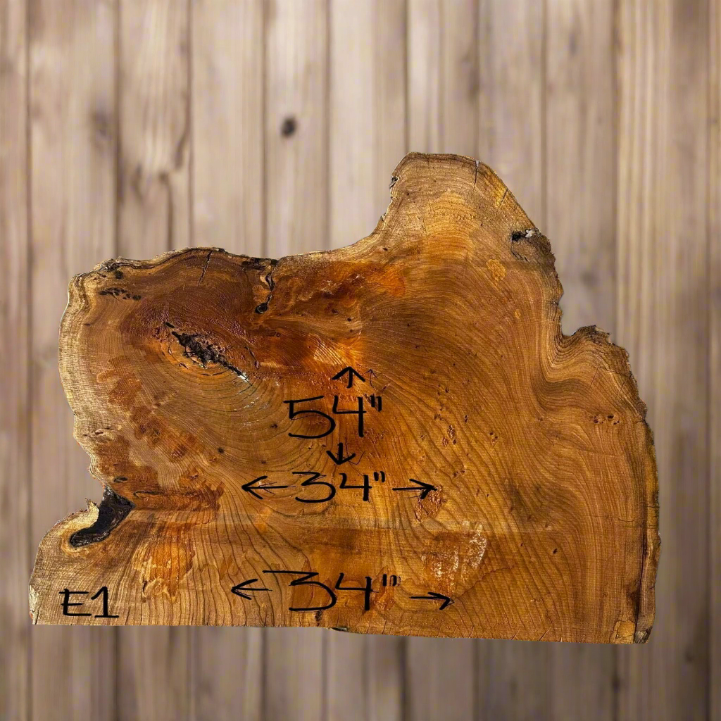 Bring rustic beauty into your home with this 54"x34" Live Edge Elm Slab. Crafted from durable elm wood, the live edge detailing gives this slab a unique, organic look. Its size and shape make it perfect for surfaces like dining room tables or desks.