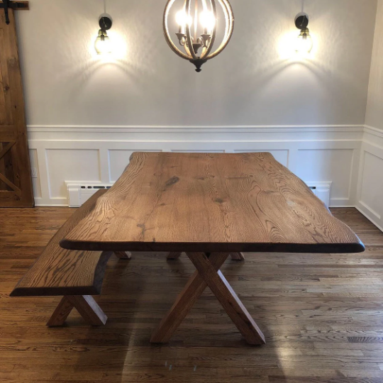 Our Live Edge Jointed Red Oak Dining Table, crafted from solid wood, offers a distinctive natural design that commands attention in any dining room. The live edge highlights the hardwood’s inherent beauty, creating a stunning focal point perfect for entertaining. Built to last with timeless elegance and durability, this table is a lasting investment for luxurious dining experiences.