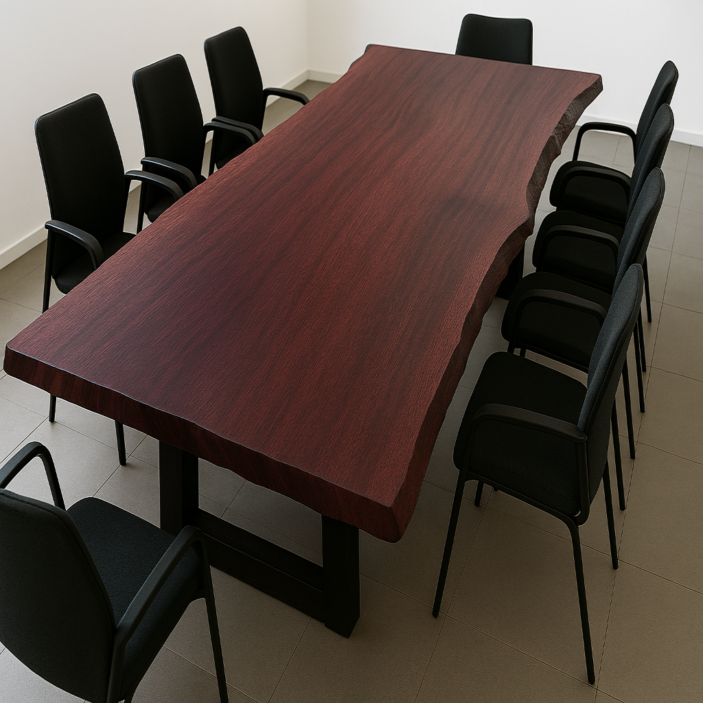 Experience the perfect blend of natural beauty and professional elegance with our Live Edge Mahogany Conference Table. Crafted from authentic Mahogany wood, this table features a stunning live edge that adds a rustic, earthy touch to any office setting. Its unique design not only enhances the aesthetic appeal but also fosters a welcoming environment where ideas can flourish. Choose from satin, semi-gloss, or gloss finishes to match your office décor and personal style. This durable, handcrafted table is more than just furniture—it’s a statement piece that encourages collaboration and makes every meeting feel important and inspiring. Bring your team together and watch creativity and productivity soar.