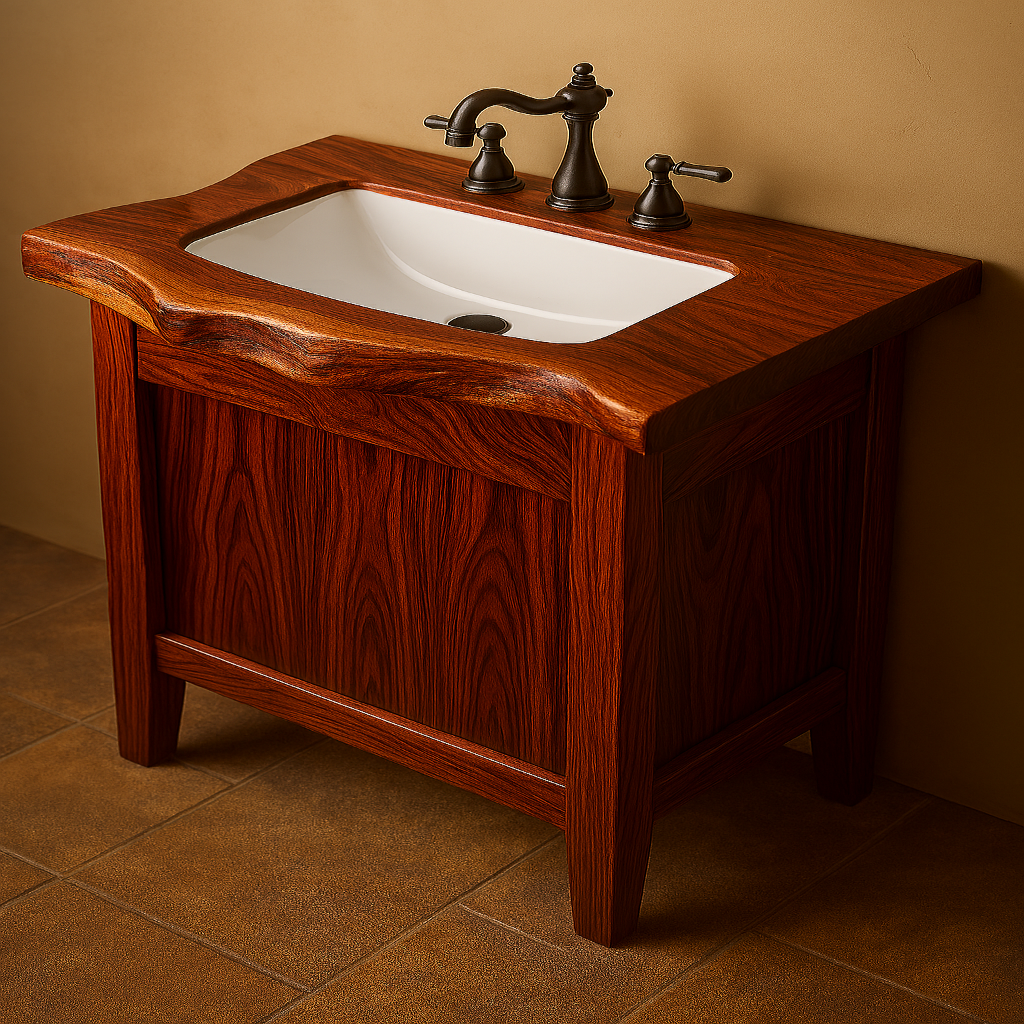 Transform your bathroom into a sanctuary of natural elegance with the Live Edge Mahogany Vanity. Crafted from exquisite live edge Mahogany wood, this vanity showcases the wood’s rich tones and unique grain patterns, adding warmth and character to your space. The organic live edge design brings a rustic yet refined touch, making each piece truly one of a kind. Its timeless style complements a variety of décor themes, from contemporary to traditional, ensuring it remains a beautiful focal point for years to come. Beyond its stunning appearance, the sturdy construction promises durability and lasting beauty, turning your bathroom into a sophisticated retreat. Experience the perfect blend of nature’s artistry and functional design with this exceptional vanity.