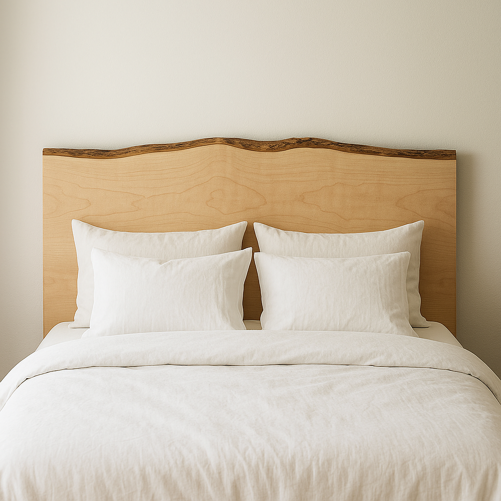 Crafted from genuine Maple wood, this Live Edge Maple Head Board brings warmth and rustic charm to your bedroom. Its hand-carved details create a truly unique focal point, adding character and inviting comfort to your space. Elevate your sleeping area with a one-of-a-kind piece that blends natural beauty and artisanal craftsmanship.