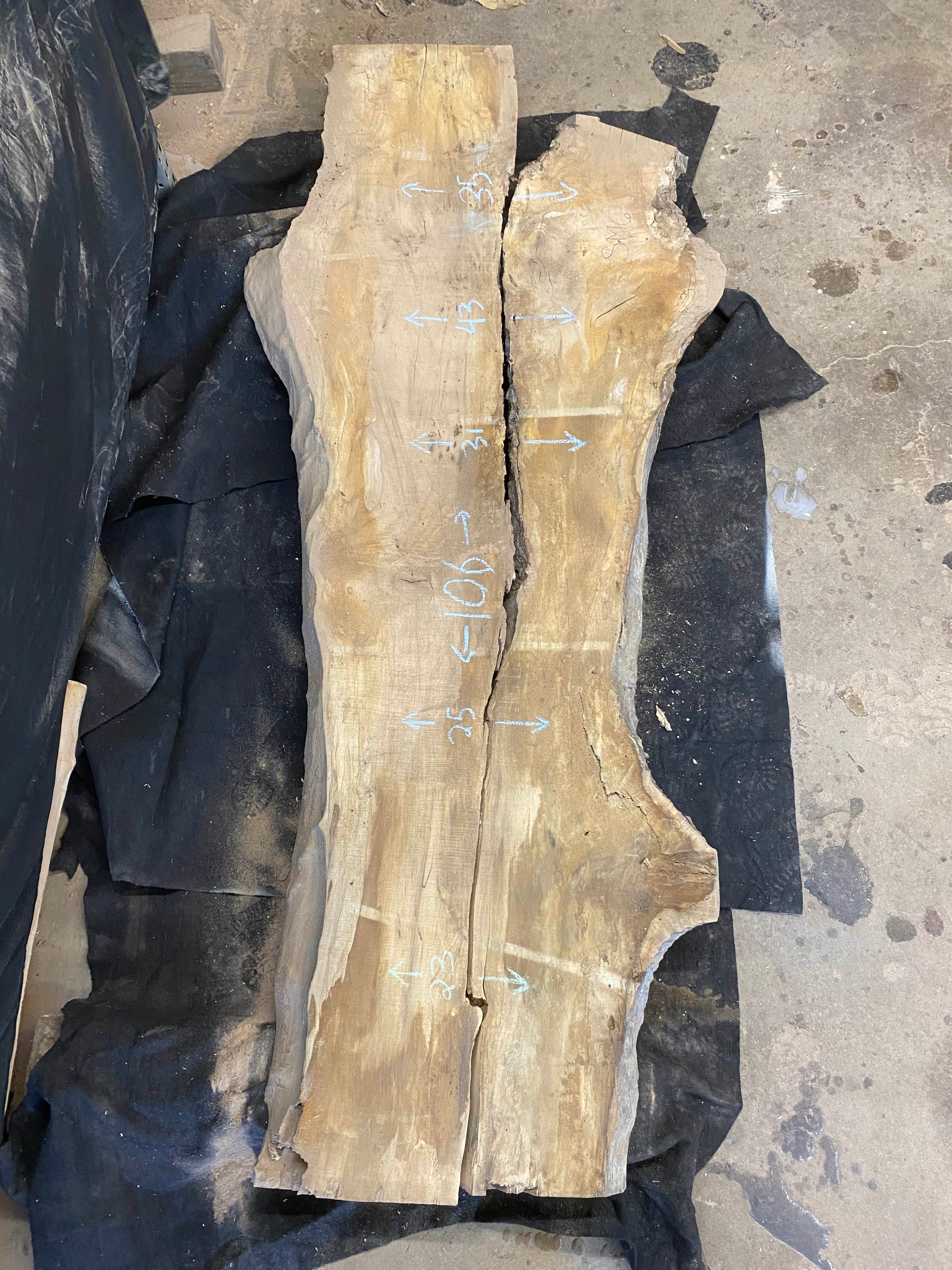 This professional-grade live edge spalted maple slab is a must-have for any woodworking enthusiast. At more than 8ft long and 23-35" wide, it's the perfect size for creating distinctive furniture pieces or unique wall décor.