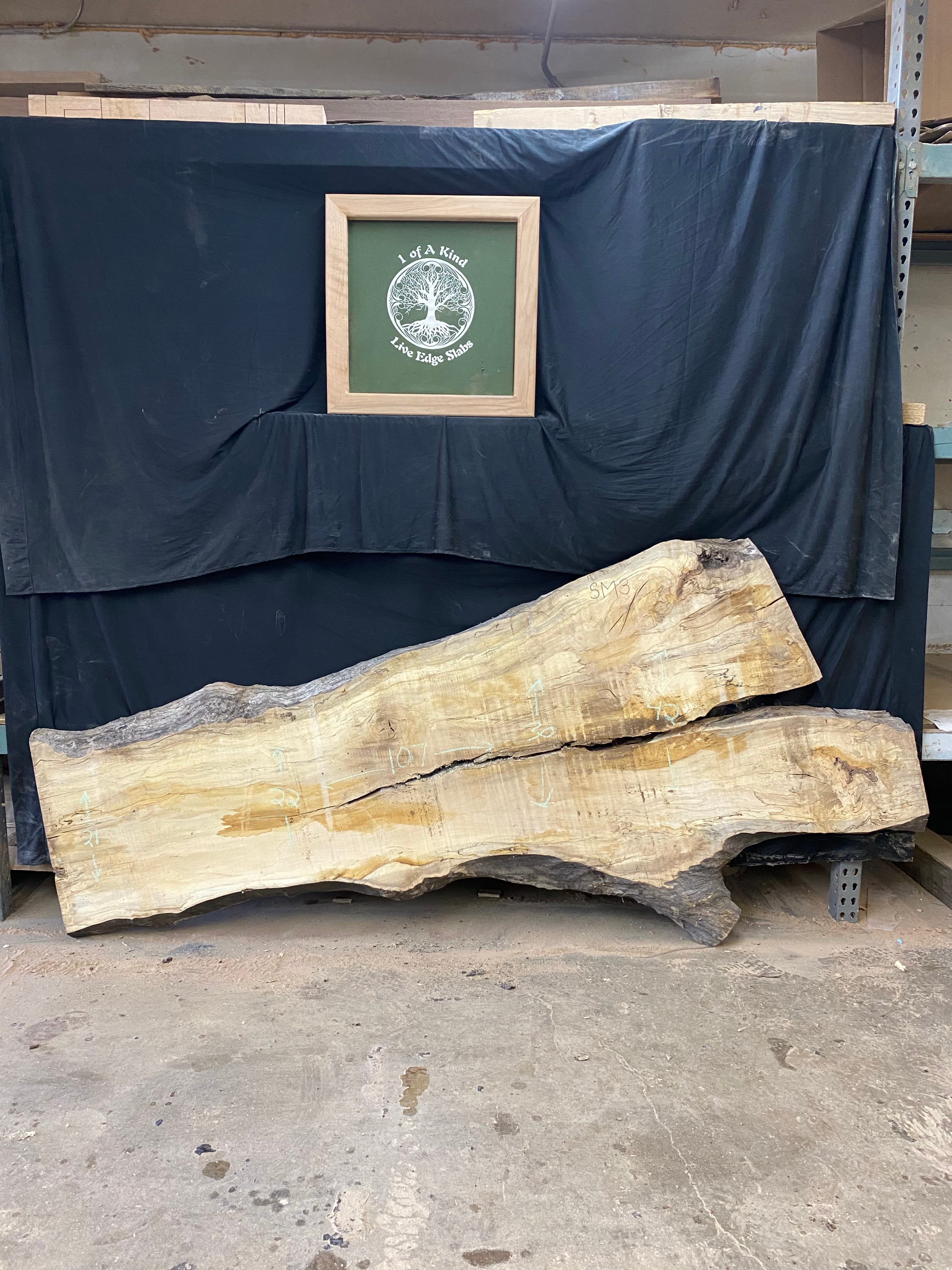 This Live Edge Spalted Maple Slab is 107 inches long and 21-42 inches wide, ideal for woodworking projects. Its live edge gives it a unique, rustic look, while its spalted grain adds texture and depth to the piece. Perfect for all skill levels.