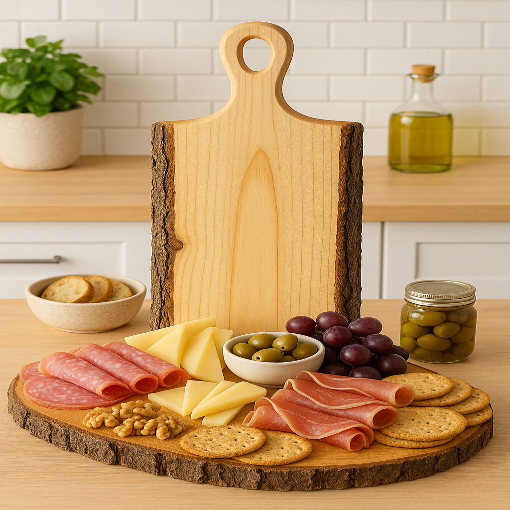 Our Live Edge Spruce Charcuterie Board offers a stunning and functional way to showcase your favorite cheeses, crackers, and charcuterie. Handcrafted by skilled artisans from a single piece of spruce, each board features unique natural edges and rich wood grain that bring warmth and character to any setting. Its generous surface provides ample space for arranging a variety of delicacies, making it ideal for gatherings both large and intimate. More than just a serving tray, this board doubles as a charming centerpiece that elevates your presentation and invites conversation. Durable and easy to maintain, it promises lasting beauty and practicality, enhancing every dining experience with a touch of rustic elegance. Whether you’re hosting a casual snack or a festive celebration, this charcuterie board transforms ordinary moments into memorable occasions.