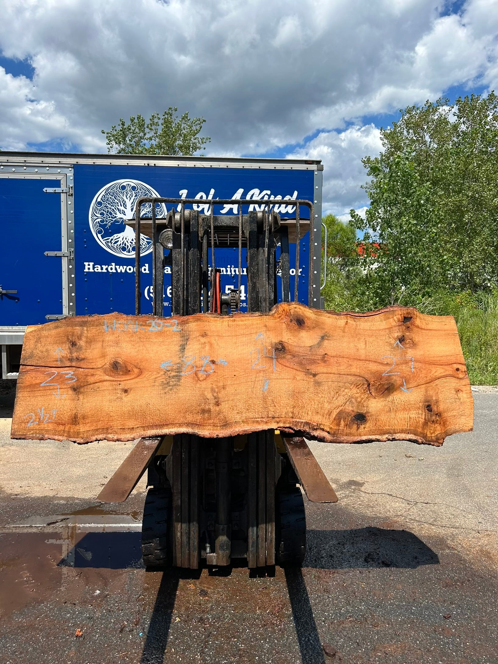 Create beautiful furniture with this magnificent Live Edge White Oak Slab. Its unique dimensions, 88"L x23-27"Wx2 1/2"T, will create a stunning centerpiece in any room! Its natural white oak look makes it the perfect material for crafting a unique and exquisite piece. Dare to dream and create something amazing!